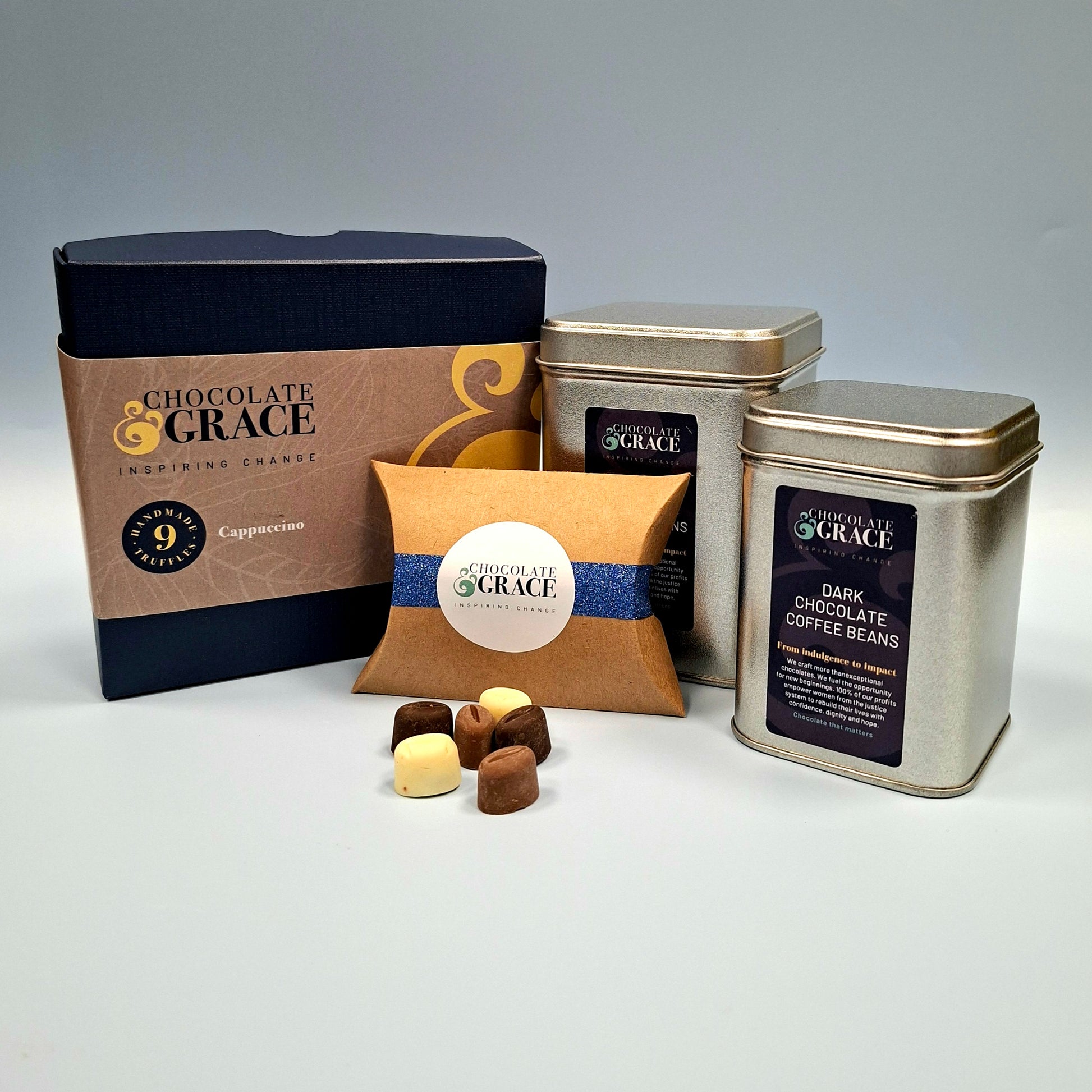 These exquisite ethically sourced and locally roasted whole coffee beans come from our fabulous friends at Glesga Roasters. Encased a mixed of premium Belgian chocolate in milk, white and dark chocolate. They are rich, bold, and beautifully balanced for a truly indulgent treat.